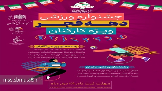 به گزارش روابط عمومی مدیریت امور پشتیبانی به نقل از روابط عمومی معاونت توسعه مدیریت و منابع دانشگاه جشنواره ورزشی کارکنان، ویژه دهه مبارک فجر برگزار می شود.